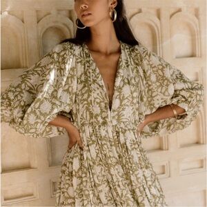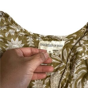 Daughters of India Kira Midi Dress 100% Cotton Boho Green Olive Floral Print XL