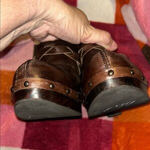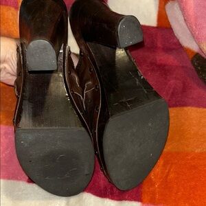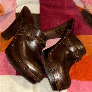 These brown leather mules feature a stylish chunky heel and a rounded toe, offering both comfort and elegance. Crafted from rich brown leather, they showcase visible stitching details that add a touch of sophistication. Perfect for any occasion, these mules are a versatile addition to your footwear collection.