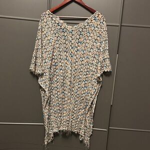 Chic knit tunic with a blend of beige and blue. Perfect for casual elegance.