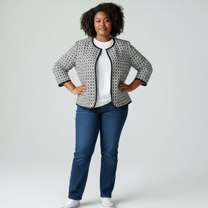 Womens Plus Size 18 Blazer black white floral Cottage Core Lane Bryant Casual