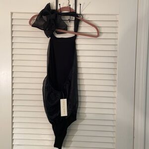 Thirty Thirty LA Black Sheer Lined Poly Sheer Halter Bodysuit Size S