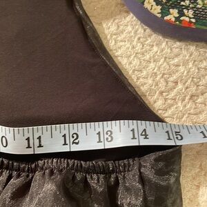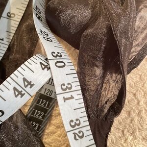 Gives the illusion of taffeta but it’s a Poly with 5% Spandex. Great piece for this nights out! Great sheen to it! Never worn Measured 32” for length of halter bow length!