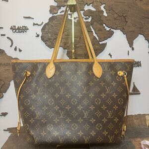 Louis Vuitton Monogram Neverfull with a cherry red reversible interior.