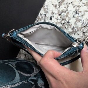 ✨ SOLD✨Coach SET Signature Jacquard Teal Metallic Stripe Hobo Wristlet Wallet