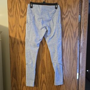 Comfortable gray athletic leggings. Perfect for workouts or casual wear.