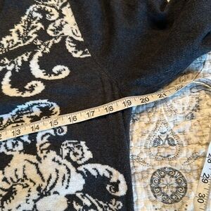 This elegant dark gray and white floral dress offers a sophisticated look for any occasion. The intricate floral pattern adds a touch of femininity and style. Soft sweater fabric. First image is AI generated for interest! See actual item photos for details!