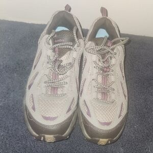 Stylish Columbia womens hiking shoes. Gray with purple accents. Durable and comfortable and sturdy. Size 8