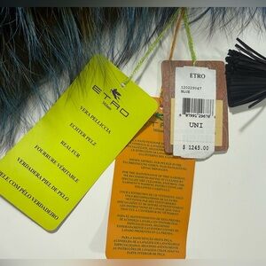 Made from genuine real fur and finished with adjustable tassel ties, this Etro Milano fur collar scarf is one size (UNI) and easy to style over neutral or monochrome looks. Originally retailed at $1,245 per attached tags. Pre-owned condition; please review all photos carefully for fur texture, color variation, and tag details. A rare luxury accessory ideal for elevated layering, fashion-forward styling, and high-end resale collectors.
