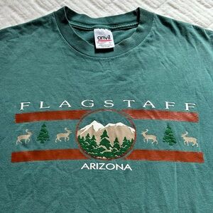 Vintage 1990s forest green Flagstaff Arizona graphic tee.