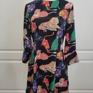 Zara Multicolor Cat Print Long Sleeve Dress Size Large