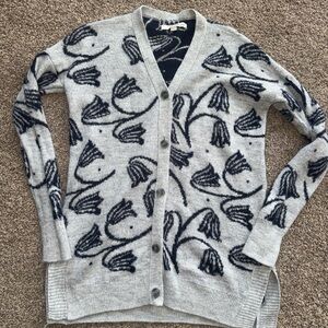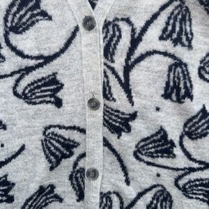 Ann Taylor LOFT Women’sXSGray Cardigan V Neck 5 Buttons Down Navy Floral Pattern