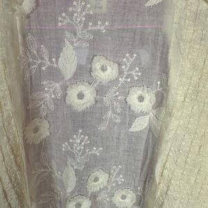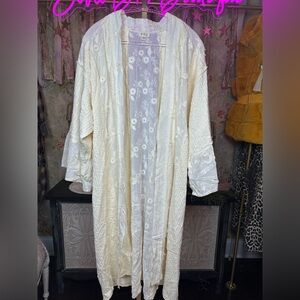 NWT POL Ivory Flower Lace Trim Open Front... Floral Embroidered Cardigan