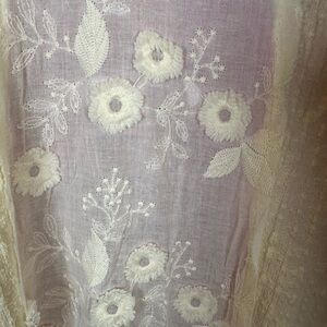 Chic ivory cardigan with floral embroidery. Ideal for layering.