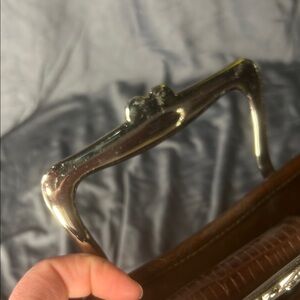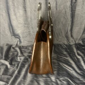 Brown Crocodile-Embossed Leather Handbag Y2K Silver Tone Details