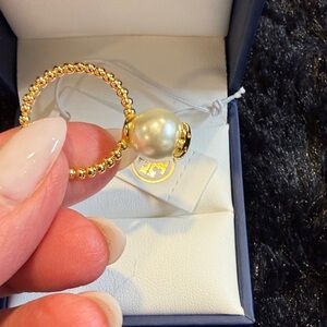 Tory Burch Milgrain Rope Pearl Ring Gold Tone