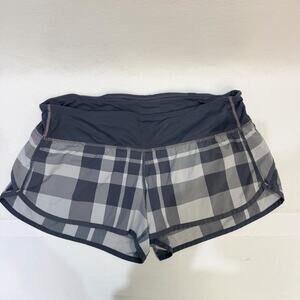Lululemon Run Speed Shorts Foxy Plaid Gray Shades Lined Built in Briefs Size 6
