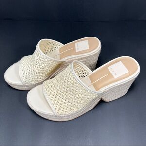 Dolce Vita Ivory Cream Platform Sandals Raffia Espadrille Heels Size 7.5 NEW