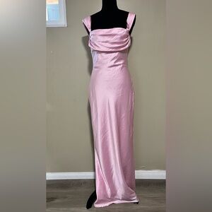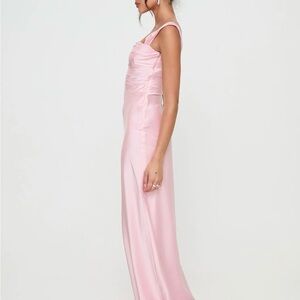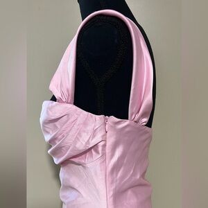 Chic strapless design. Soft pink hue. Perfect for elegant outings.