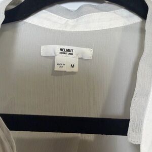 Chic sheer light gray blouse. Ideal for stylish layering. High-low cut. Fits longer.