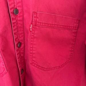 80’s/90’s Classic Levi’s Red Tab red button-down shirt with embroidered logo (back). 100% cotton chambray, made in Korea. Features two chest pockets. Unique vintage piece. Ideal for casual wear.