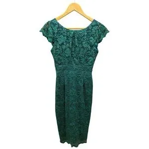 Great used condition, no signs of wear. This midi dress is size S in reach emerald color. Features a V-opening at the back and a gold zipper. Ideal for elegant events.