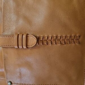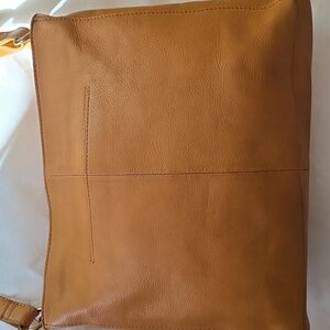 The Sak Heritage Leather Crossbody bag in a tan. It is known for its soft leather and functionality.