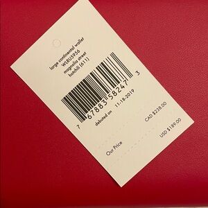 Chic red wallet with scalloped edge. Features gold-tone logo. Perfect for style and function.