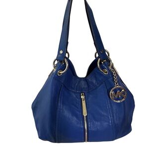 Michael Kors Electric Blue Hobo Shoulder Bag Gold Hardware Zipper Accents