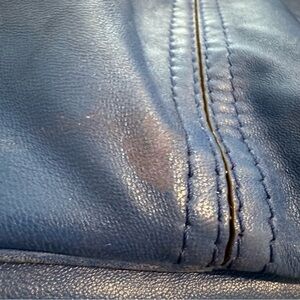 Leather is supple and nice. A little discolored space, but not noticeable.