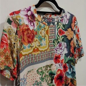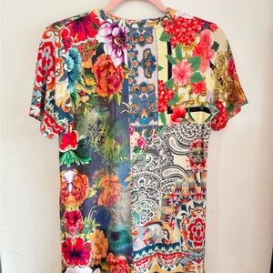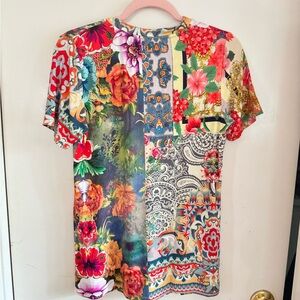 Johnny Was Catalina Block Multicolor Print Top Size S- Boho Hippie Festival