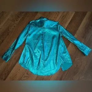 Eye-catching metallic teal shirt.