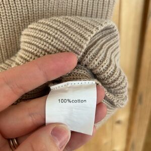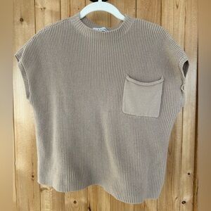 Women’s Anrabess tan knit sleeveless sweater featuring a convenient front pocket. Perfect for layering. 100% Cotton. Size M.