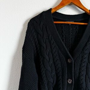 Quince Women's Black 100% Organic Cotton Cable Knit Oversized Cardigan Sweater S