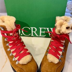 Cozy J. Crew brown suede boots with vibrant red laces and plush lining. Ideal for winter adventures. J Crew Nordic boots (Size 7) tried on never worn.