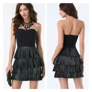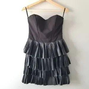 Elegant strapless mini dress. Features tiered pleated skirt. Perfect for evening wear. I bought it on Posh, NWT. Worn once to a deadmau5 concert.