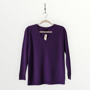 Talbots Petites 100% Cashmere V-Neck Sweater PM Purple Luxury Soft Knit New
