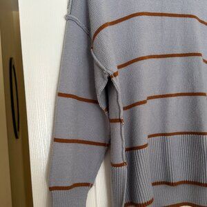 Wishlist Blue and Copper Striped Oversized Sweater with Exposed Seams - Size Sml