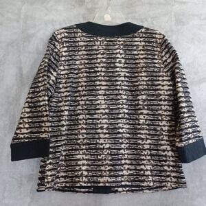 Chicos Jacket Sz 1 / 8 Animal Print Textured Button Front Artsy Black Tan Career