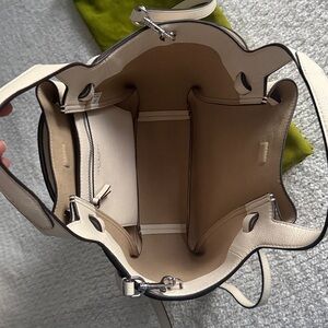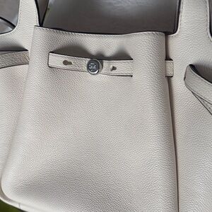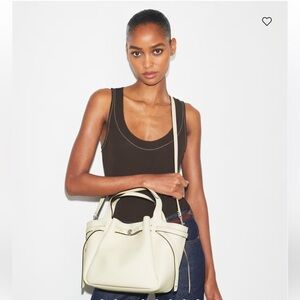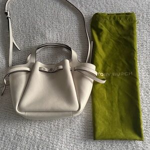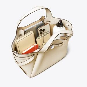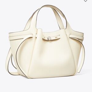 TORY BURCH Small Romy Tote Light Cream Leather Bag Handbag Silver Accents