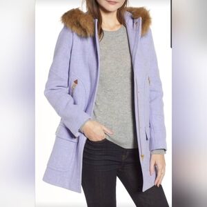 J.CREW Women's Chateau Parka Stadium Scarf Nello Gori Lilac Wool Coat Fur Hood