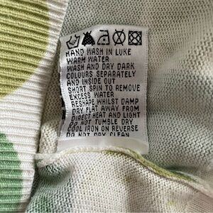 True 90s vintage Boden lightweight buttoned cardigan. Ivory with grass green. Groovy 70s spring color palette. Round crew neck. Long sleeve. 100% Pertect sweater for spring and summer!
