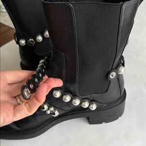 Zara Genuine Leather Boots with Silver Pearl Accents size 40 /9-9.5