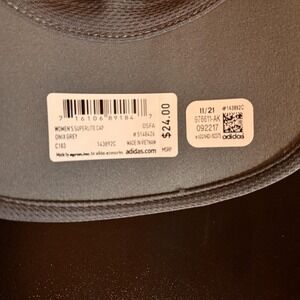 * Details: Moisture-wicking AEROREADY sweatband and panels, UPF 50 sun protection, breathable mesh side inserts, recycled content construction with "END PLASTIC WASTE" hangtag, front brim sticker reads "WOMEN'S FIT ADJUSTABLE UPF 50."