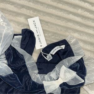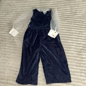 Janie and Jack Baby Girl Velvet Bow Collar Jumpsuit Blue Size 3 Toddler NWT