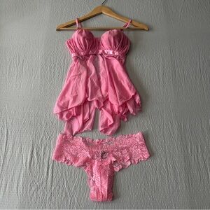 Victoria's Secret Pink Lace Chemise Set