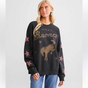 Buckle Ford Bronco Black sweatshirt with gold bronco design. Red star accents on sleeves. Size Large. Smoke free home. New with tag.