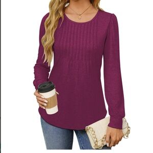 Women Fall Tops Dressy Casual Blouses Pleated Top
