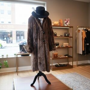 Stay warm and stylish with this luxurious brown shearling coat. Perfect for chilly days, this coat features a soft cream lining for added comfort.