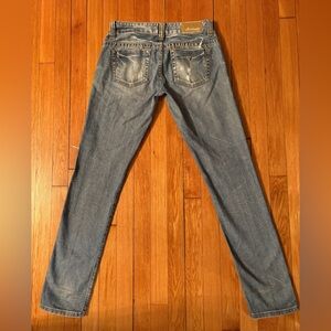 Classic Guess jeans with a faded look. Comfortable and versatile for everyday wear.