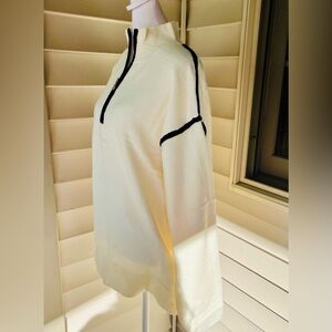 Evaless off white Quarter Zip Pullover sweater with Colorblock Trim- XL